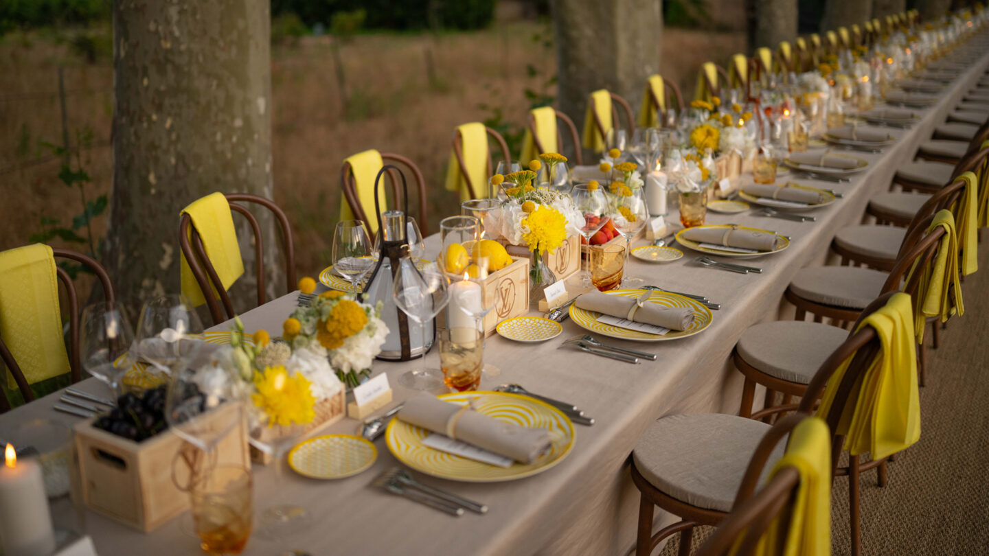 An intimate summer evening set in the heart of the Minuty estate in Saint-Tropez. Conceived as a cocktail followed by a seated dinner, the event celebrated the FW25 Women’s Collection in a relaxed yet refined atmosphere.